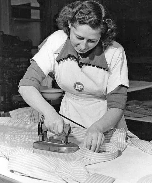 在抗皱技术和化纤面料推广之前,熨烫衣物曾经是一项繁重的家务劳动 Wikipedia
