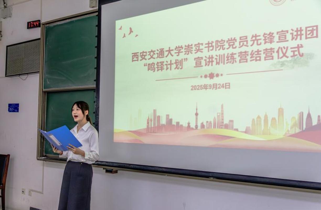 建校130周年暨西迁70周年之际,崇实书院党员先锋宣讲团于2025年9月启动“鸣铎计划”宣讲训练营,旨在弘扬抗战精神、传承校史文脉,培养兼具家国情怀与专业素养的青年宣讲骨干。经过两周的系统培训与实践,训练营于9月24日收官。